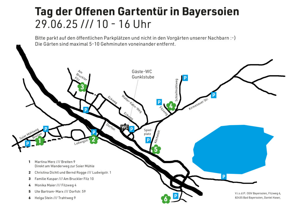 Nach dem großen Erfolg beim letzten Mal, freuen wir uns, dieses Jahr wieder einen Tag der offenen Gartentür anbieten zu können. Dieses Jahr werden 6 Gärten aus dem Dorf teilnehmen. Tipp: nicht alle beim Garten Nr. 1 beginnen, sondern die Runde versetzt starten, so dass es nicht zu voll wird in den Gärten.